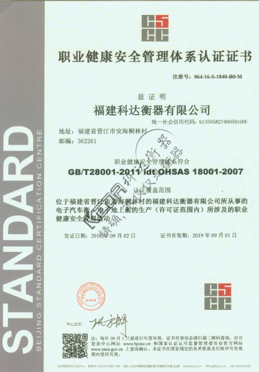 科達(dá)地磅通過(guò)職業(yè)健康體系認(rèn)證