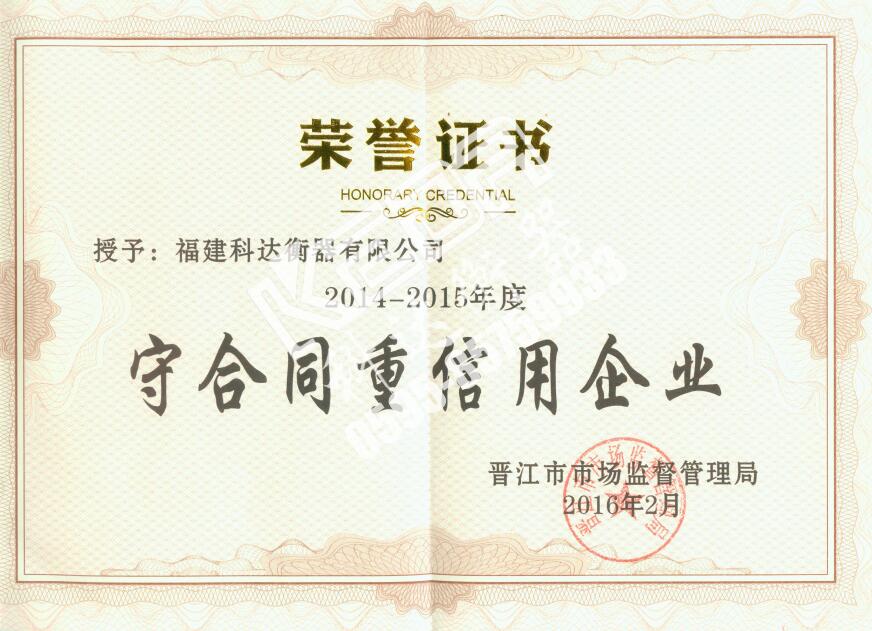 福建科達(dá)衡器有限公司榮獲2014-2015年度“守合同重信用企業(yè)”榮譽(yù)稱號